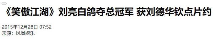 凤凰文娱《《笑傲江湖》刘亮白鸽夺总冠军 获刘德华钦点片约》